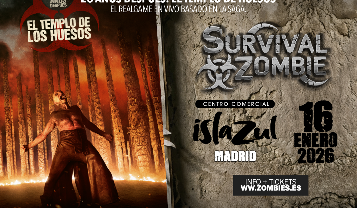 La cita es el viernes 16 de enero en el Centro Comercial ISLAZUL, en Madrid. La noche arranca con la proyección especial de “28 Años Después: El Templo de los Huesos” a las 22:00 h y, justo después, comienza la Survival Zombie, de 23:55 h a 06:00 h. El email no indica el precio, así que conviene consultar disponibilidad y entradas cuanto antes porque este tipo de planes se llena hasta arriba.